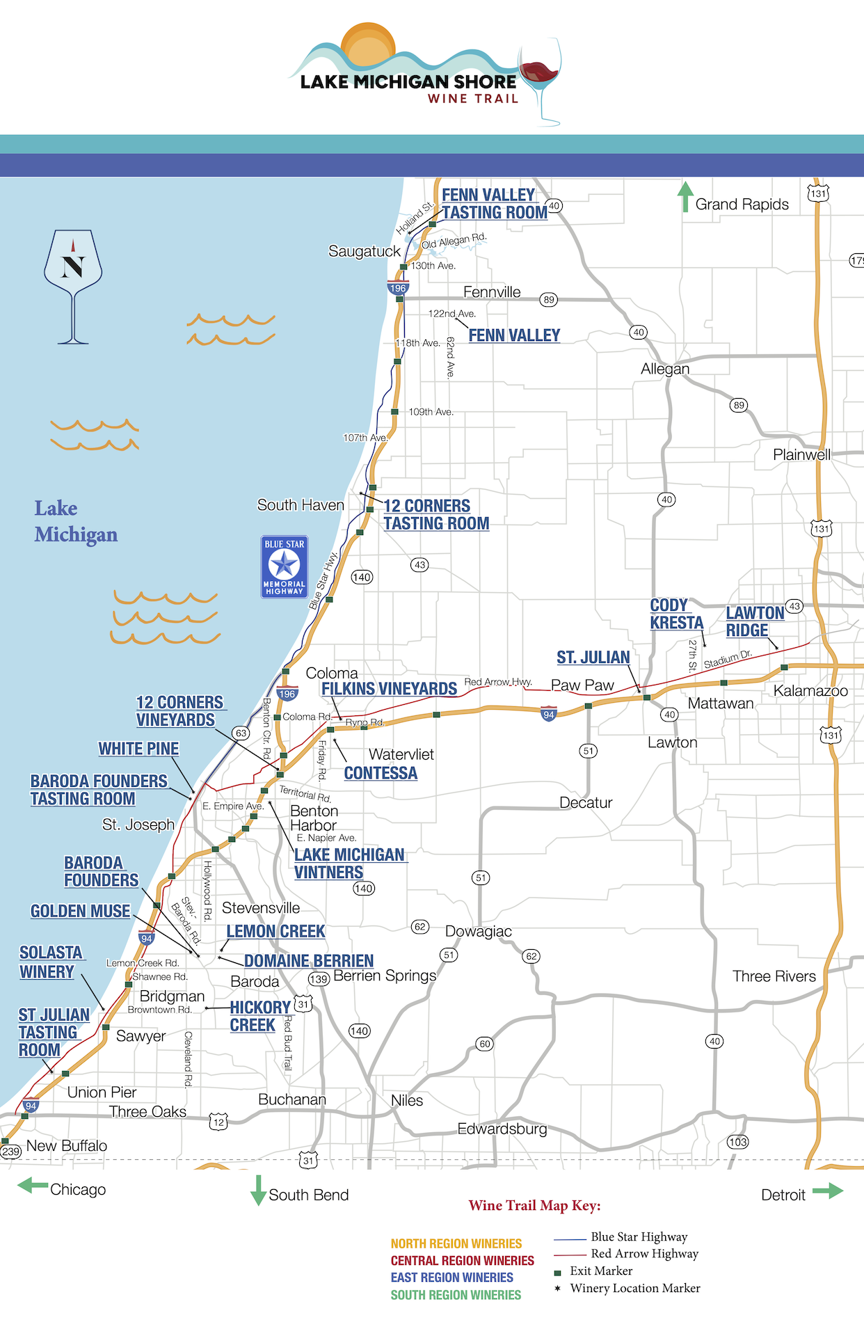 We are located in the heart of the Lake Michigan Shore Wine Trail!  There are dozens of wineries, offering unique, experiences along with their incredible wines.